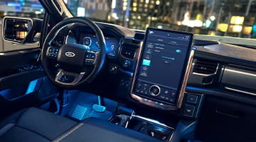 Slip inside the Ford Lightning and experience an environment where comfort meets modernity. The spacious cabin accommodates up to five passengers while the sizable cargo bed caters to a variety of hauling needs. The impeccable finish with high-quality materials and state-of-the-art amenities, such as a 12-inch digital instrument cluster and a colossal 15.5-inch touchscreen infotainment system, elevate the ownership experience. Unique features like a lockable frunk and a power-operated tailgate reinforce the Lightning's versatility.