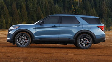 The Ford Explorer starts in the high $30K range with the Active trim, featuring a 300-hp 2.3L EcoBoost® engine, Ford Co-Pilot360® Assist+, and a 13.2-inch touchscreen. The ST-Line adds sporty styling and a premium B&O® audio system in the mid-$40K range, while the Platinum focuses on luxury with leather seats, a panoramic Vista Roof, and massaging front seats starting in the low $50K range. Performance enthusiasts will find the ST trim appealing, with its 400-hp 3.0L EcoBoost® V6, sport-tuned suspension, and bold design, priced in the mid-$50K range.