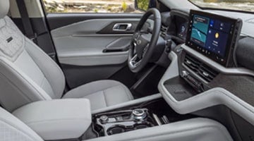The 2025 Ford Explorer blends thoughtful design and advanced technology to create a family-friendly SUV. Updates include new color schemes and soft-touch materials throughout the cabin for a more premium feel. A redesigned dashboard improves passenger ergonomics and comfort. The Explorer seats up to seven, with third-row access made simple by a button-operated second-row seat. The Explorer offers competitive cargo capacity: room for four carry-on suitcases behind the third row and up to 31 carry-ons with the second and third rows folded flat (Car and Driver).